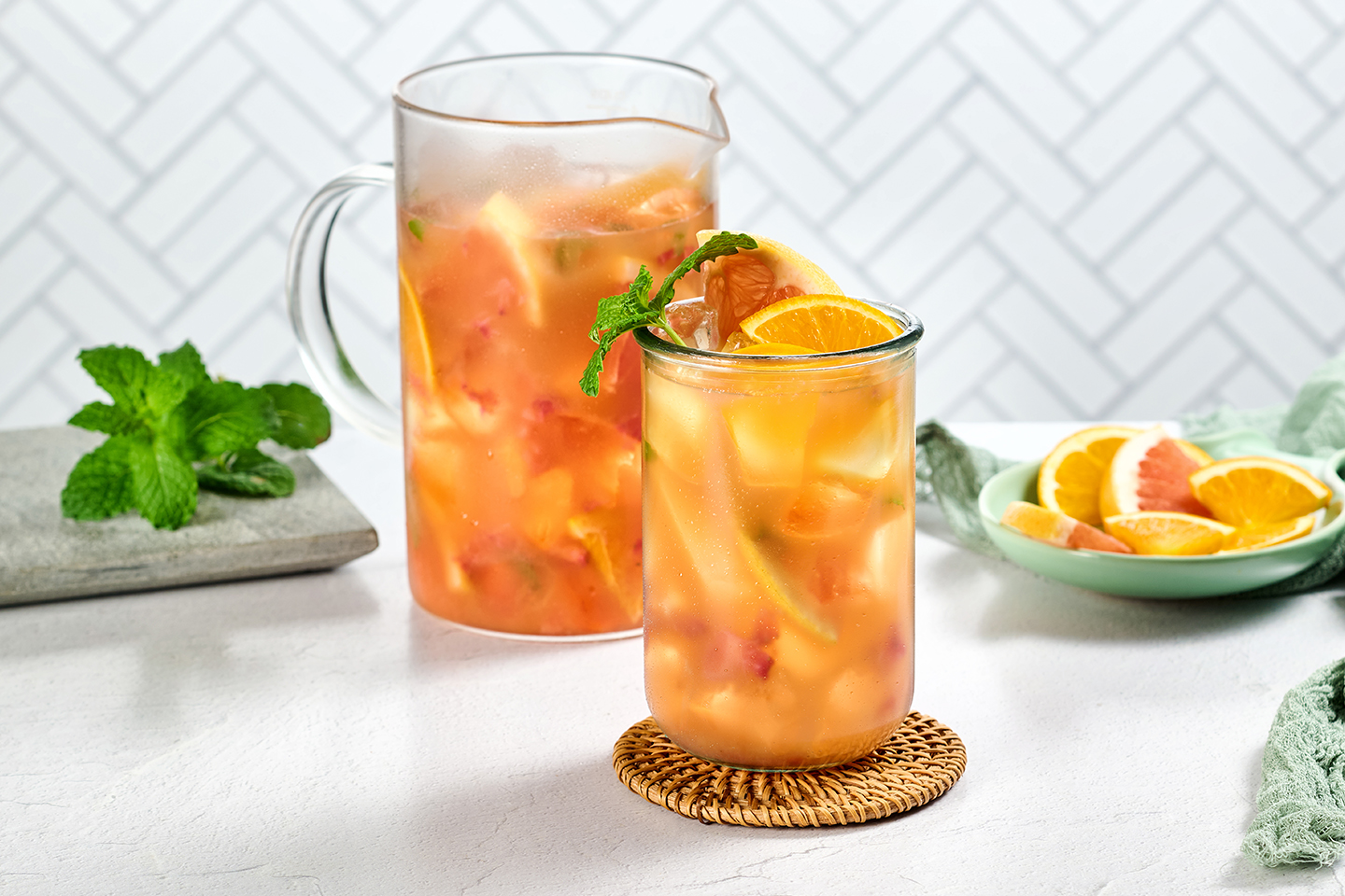 - To serve, pour Florida Citrus Strawberry Green Tea into tall glasses filled with ice. Garnish with Florida Orange and Florida Grapefruit Wedges.