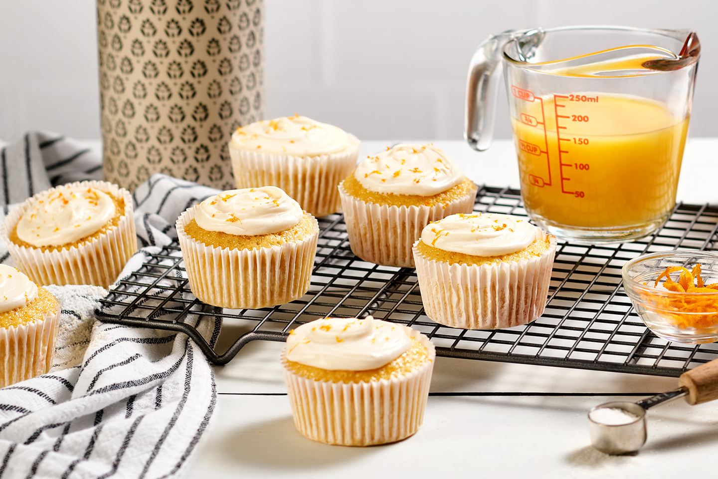 - Just before serving, place Cream Cheese Icing in a pastry bag and pipe icing on top of cupcakes. Garnish with Florida Orange zest and serve immediately.