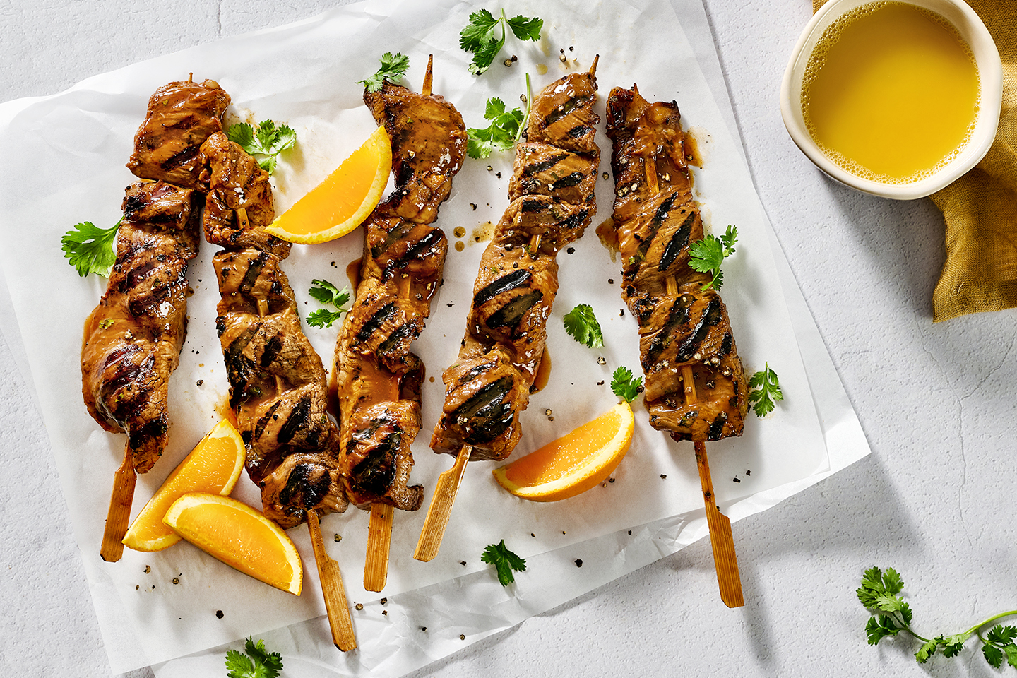 - Preheat grill. Thread steak strips onto bamboo skewers and grill over medium heat to desired temperature.